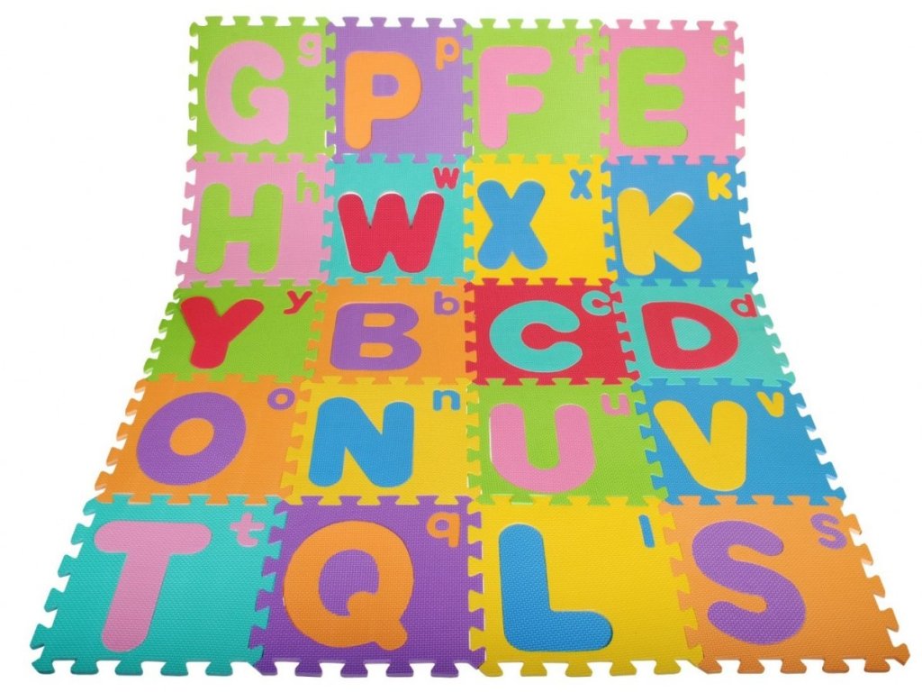 Голям и малък комплект пъзел с азбучни букви включва 26 разнообразни цветни пъзела. Пъзелите са изработени от мека, лесна за свързване и приятна на допир пяна. Могат да се използват като мат за спортни упражнения, като пъзел или като килимче за детската стая. Всеки елемент съдържа голяма и малка буква, които могат да се изваждат и така да се получат допълнителни части. Тези пъзели не попиват вода, затова се почистват лесно. При замърсяване просто ги избършете с влажна кърпа. Подовите пъзели са идеални и за упражняване на азбуката.