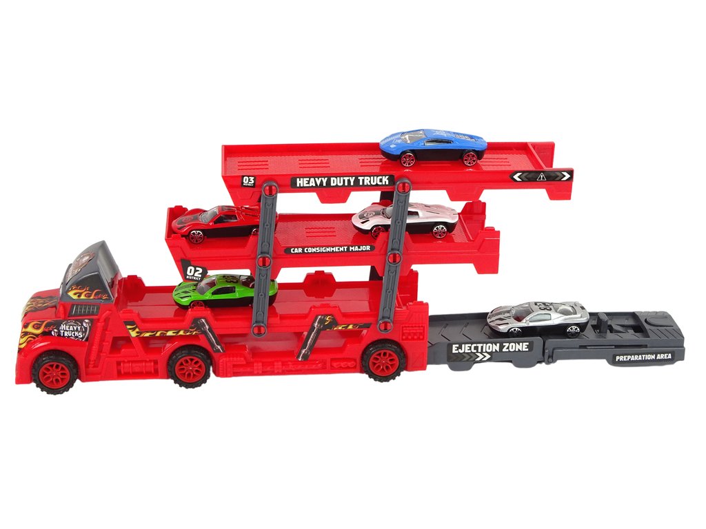 Камионът разполага с вградено устройство за изстрелване на колите. Изработен е от висококачествени материали. Освен това притежава всички необходими сертификати за безопасност, което гарантира, че вашето дете може спокойно да играе с ремаркето.