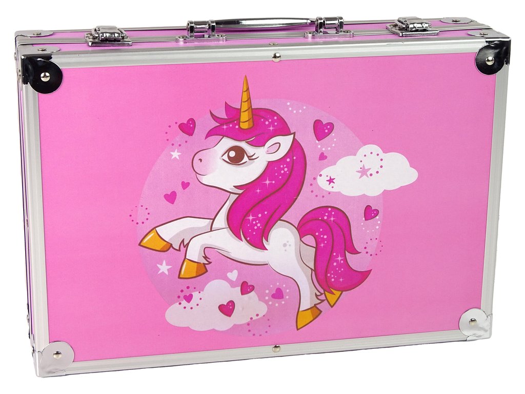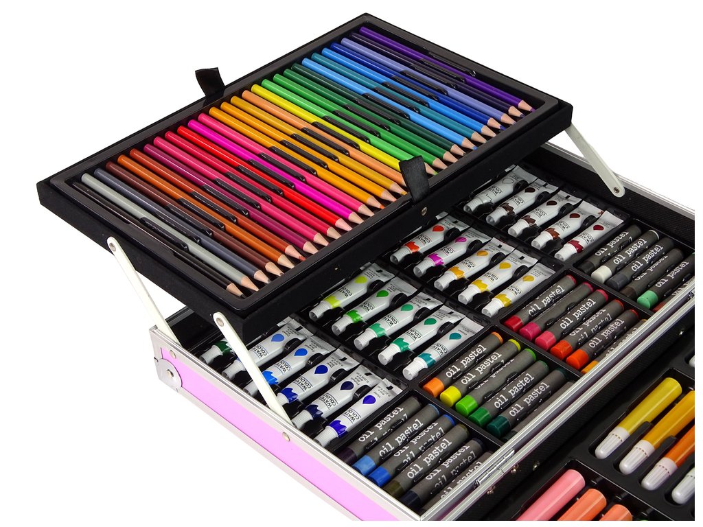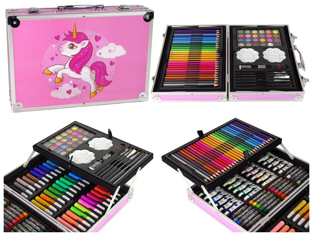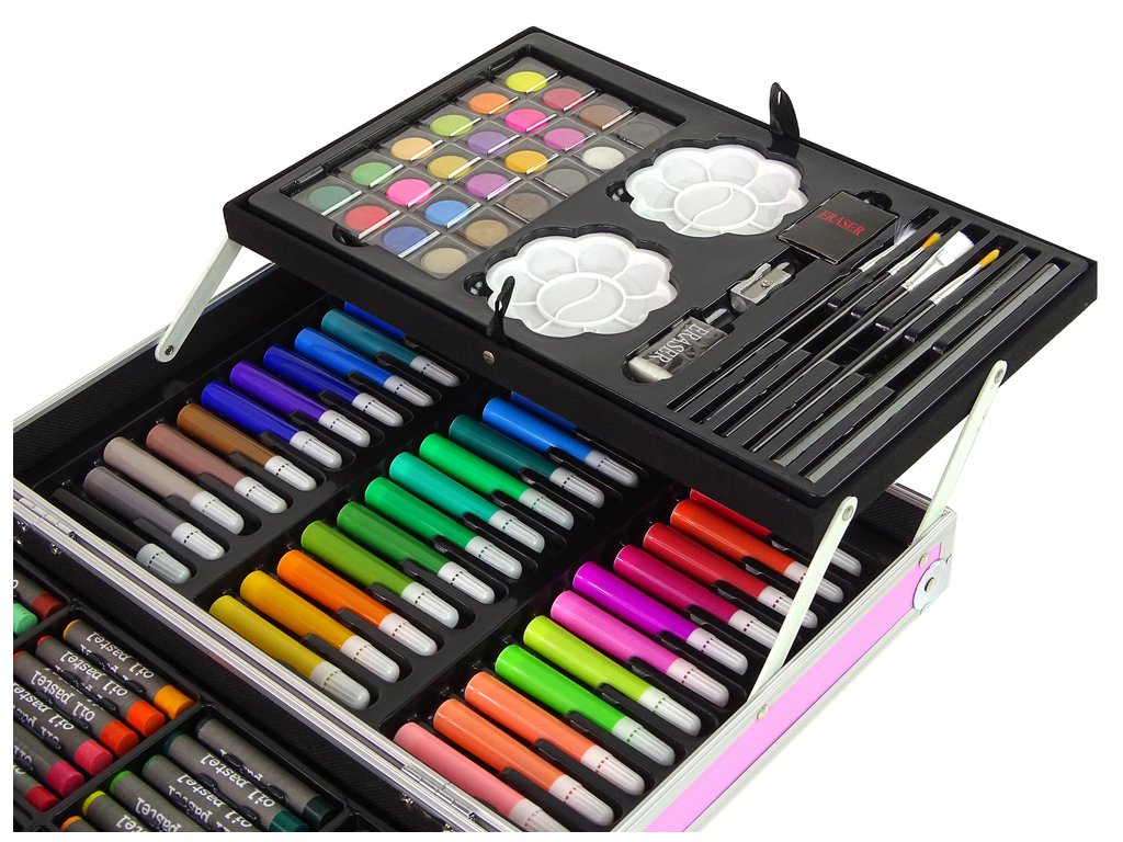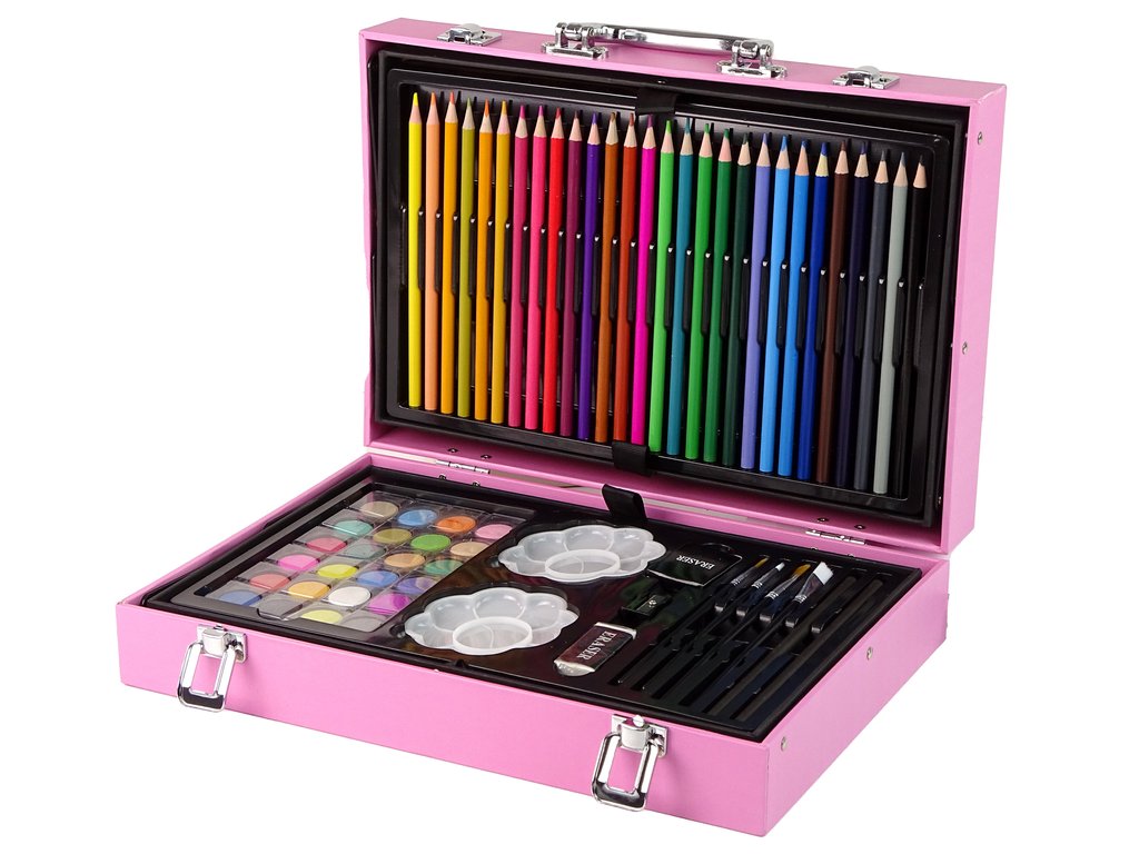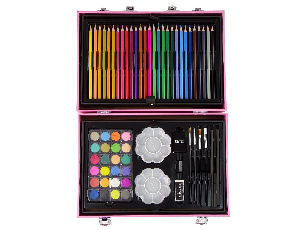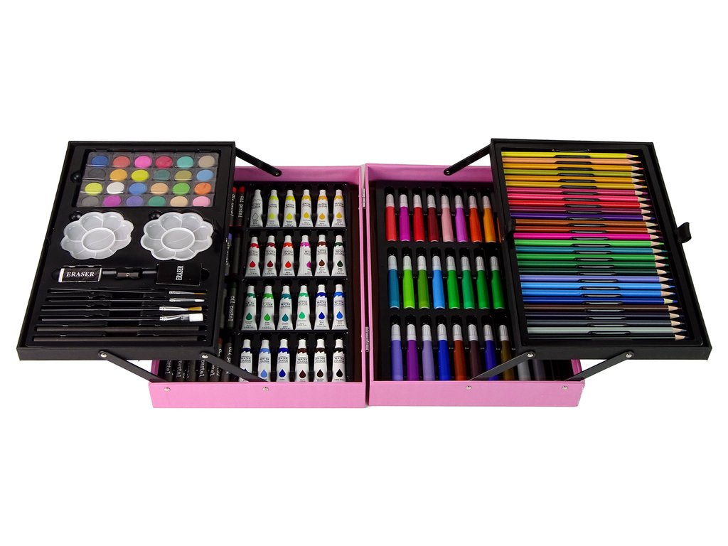 Голям художествен комплект в куфар 145 елемента розов
