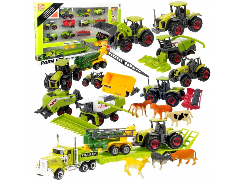 Голям комплект колички и животни ферма трактор комбайн багер камион животни, които пресъздават реални превозни средства и определено ще се харесат на всяко дете. Всички возила са подвижни и изработени с изключително внимание към детайла.