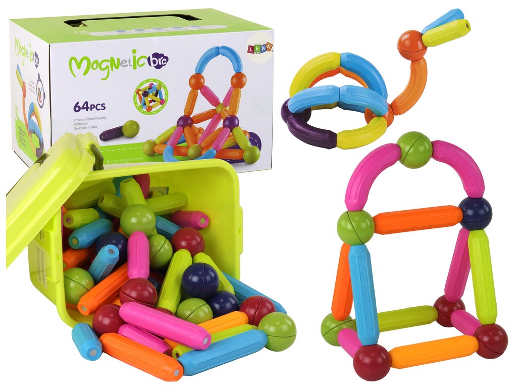 Добре дошли в света на безкрайното творчество и вълнуващата забавление с нашия иновативен комплект. Голям комплект магнитни кубчета в кутия 64 броя включва 64 прецизно проектирани елемента, които са основата за безкрайни строителни приключения.