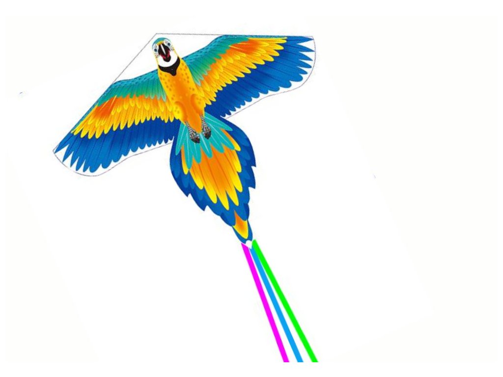 Този летящ папагал е истинско цветно произведение на изкуството и впечатляващ дизайн, който привлича внимание с размера и уникалния си външен вид. Изработен е от здрав найлонов материал, който е лек и устойчив на атмосферни условия, което го прави идеална играчка за игра на открито.