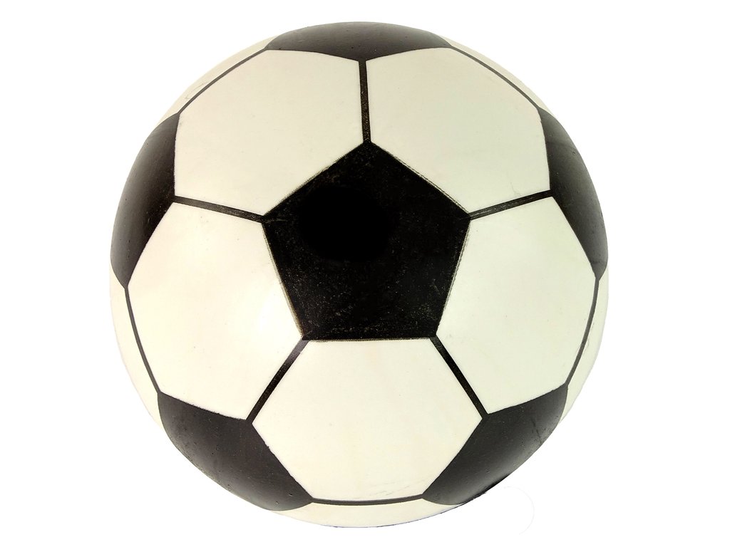 Тази голяма бяла гумена топка наподобява традиционна футбола топка. Повърхността на топката е гладка и еластична, а цялата ѝ конструкция е мека, което я прави безопасна за деца и идеална за игра.