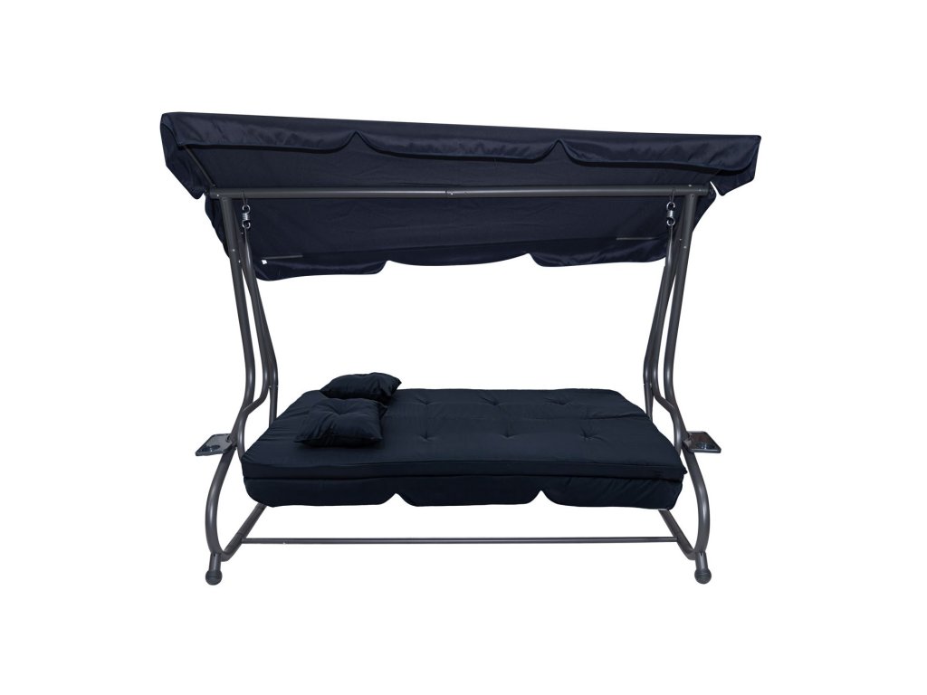 Включени са два прошити възглавници и седалка от тапицерска пяна с дебелина 10 см. Люлката лесно може да се превърне в шезлонг или да се обърнат страните на облегалките според нуждите.