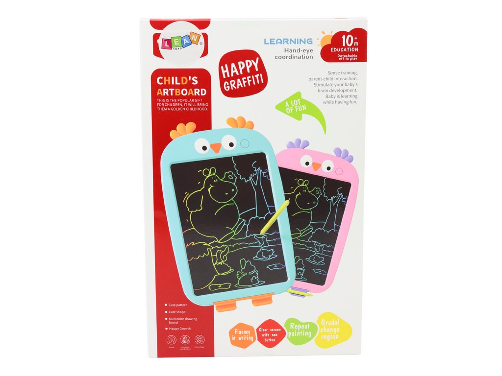 Леката конструкция на таблата позволява лесно боравене дори от най-малките ръчички, а симпатичният мотив на птичката вдъхновява за още игри и експерименти. Децата могат да създават различни рисунки, букви или първи думи, като едновременно развиват фината си моторика и креативност.