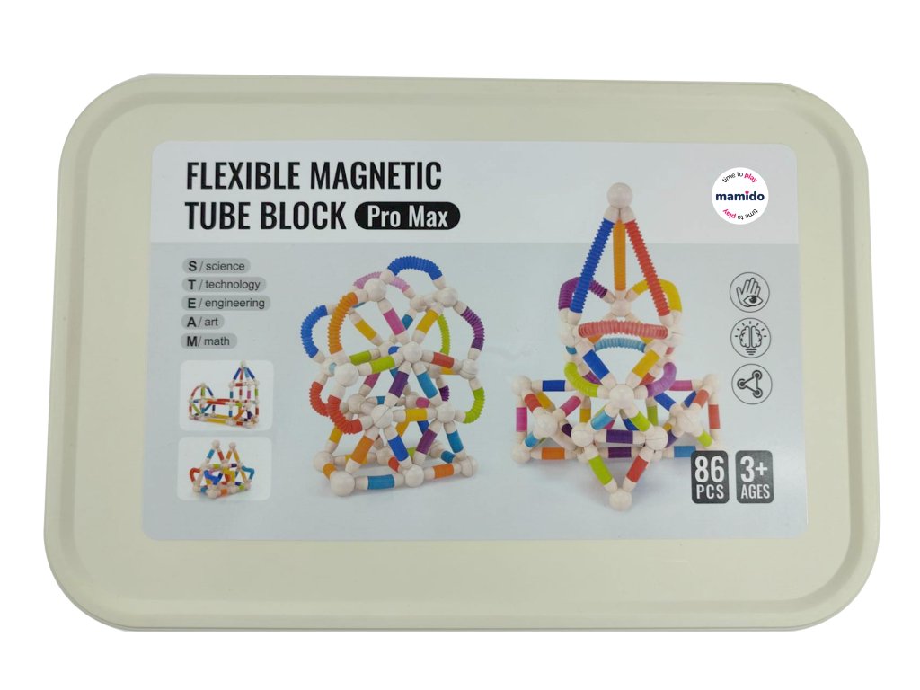 Креативен комплект с гъвкави магнитни тръбички, който позволява създаването на неограничени 3D конструкции. Благодарение на комбинацията от гъвкави тръбички и магнитни съединители, строенето е не само забавно, но и развива техническо мислене, пространствено въображение и фина моторика.
