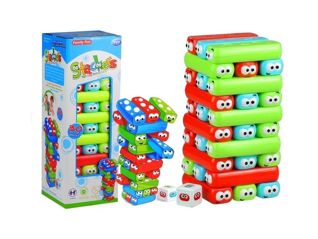 Целта е да построите кула и да бъдете достатъчно внимателни и умели, за да не падне тя. Цветните блокчета са ярки и със сигурност ще се харесат на децата. В комплекта е включена и зарче, което може да се използва при игра.