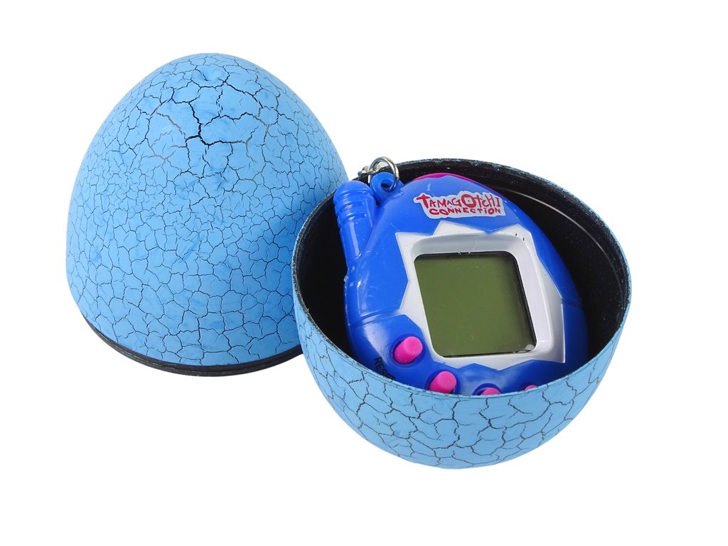 Иконната играчка Игра Тамагочи в яйце на динозавър синьо е позната на почти всеки родител. Тази интерактивна играчка е отличен начин за подготовка, преди детето Ви да има свое собствено домашно любимче, тъй като учи на систематична грижа и отговорност.