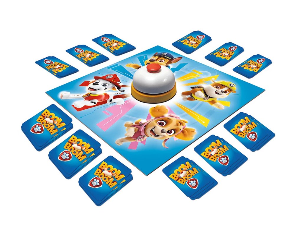 В Игра за сръчност Boom Boom Пес патрул Trefl 01911 играчите се състезават да съберат комплекти с еднакви герои от любимия детски сериал „Пес патрул“. Участниците разменят своите карти с тези на игровата дъска. След като съберат 4 еднакви героя, играчът удря звънеца, сигнализирайки, че е събрал пълен комплект. Възможността да ловуват карти от същия тип прави играта още по-вълнуваща. Играчът, който успее да събере всички комплекти с герои от Пес патрул, печели!