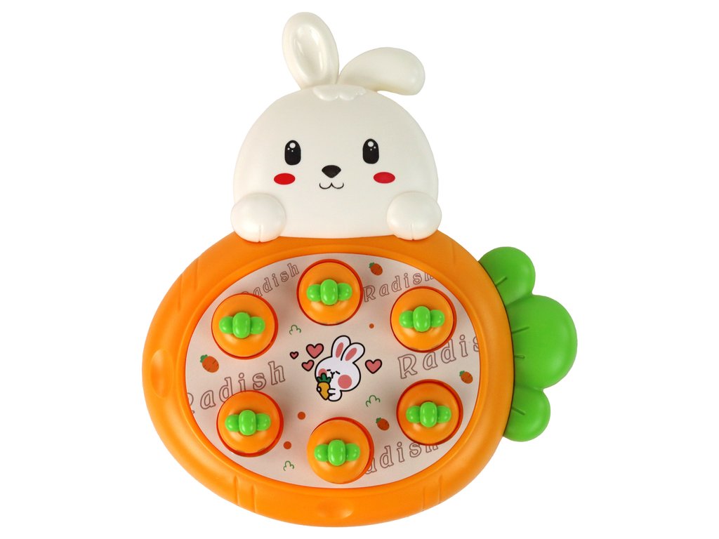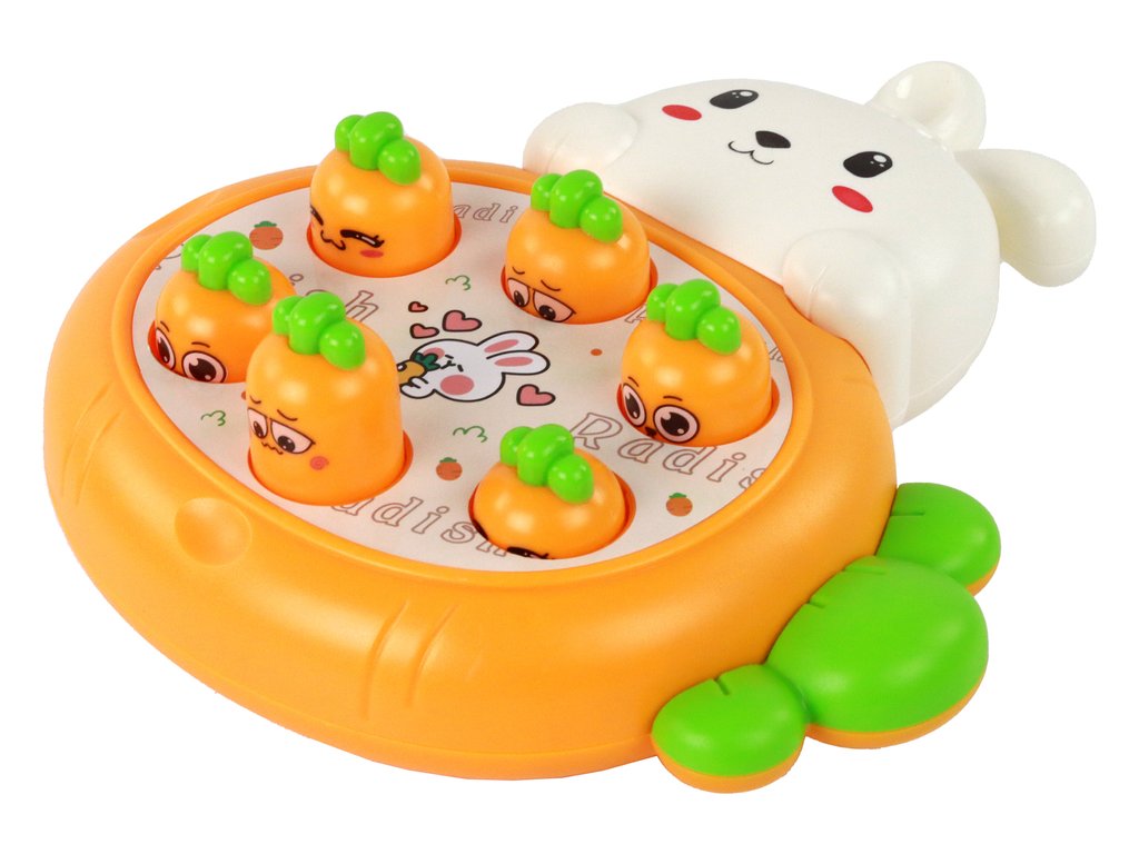 Комплектът включва панел с мил дизайн на заек, който придава приятна визия и привлича вниманието на децата. Анимираните изображения на заека внасят весела атмосфера по време на игра. В комплекта са разположени специални полета с шест моркова. Морковите изскачат от произволни отвори в полето, което прави играта вълнуваща и непредвидима.