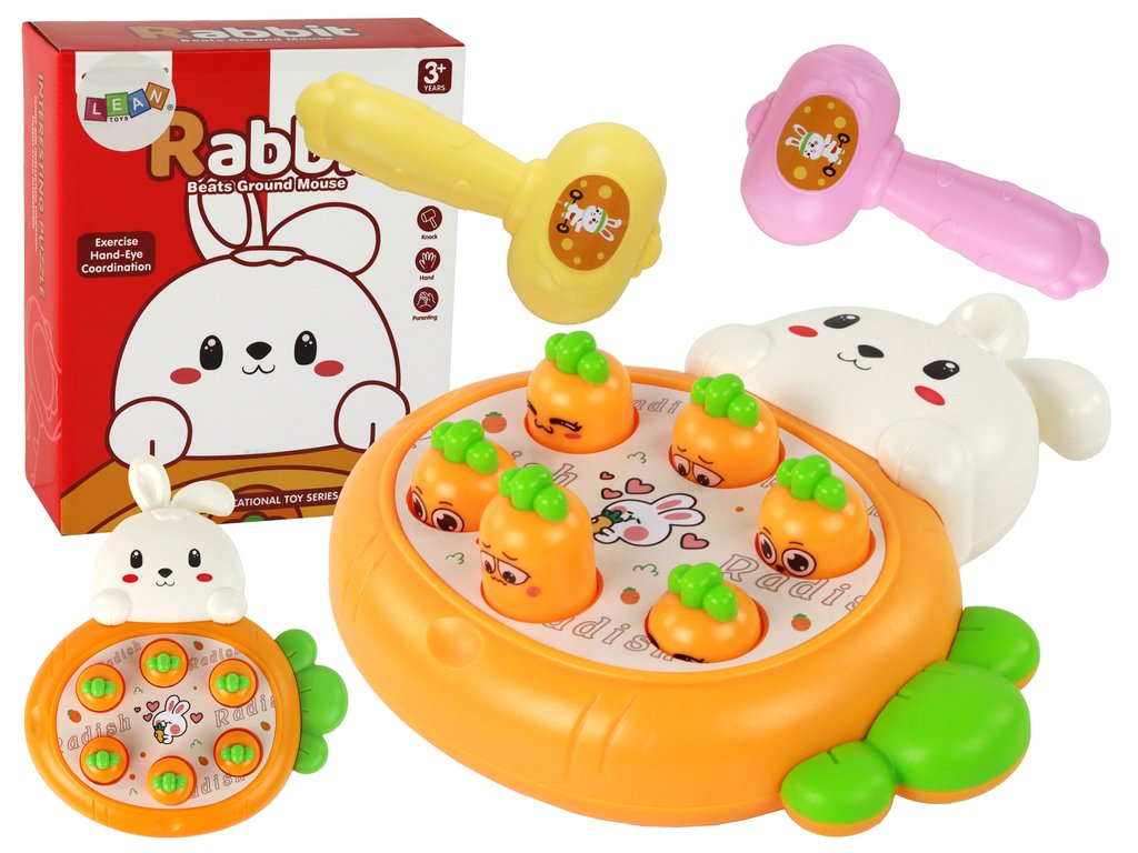 В комплекта са включени две малки чукове, позволяващи игра за двама играчи едновременно. Чуковете са леки и лесни за използване от деца, което прави играта подходяща за най-малките потребители. Играчите трябва да реагират бързо и да удрят изскачащите моркови с чуковете. Точките се присъждат за всеки улучен морков, а победител е този, който събере най-много точки.