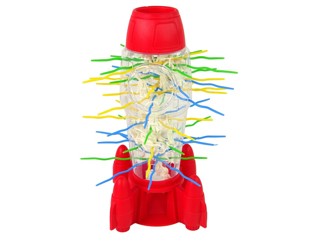 Открийте вълнуващата игра за сръчност с ракета-кула, която ще ви пренесе в космическо приключение! Размерите на впечатляващата кула са 28 см x 17 см x 17 см. Този комплект е идеален за любителите на космоса и забавните предизвикателства. В комплекта са включени 30 бели астронавти на пръчици с дължина 17 см, налични в три цвята: жълт, син и зелен.