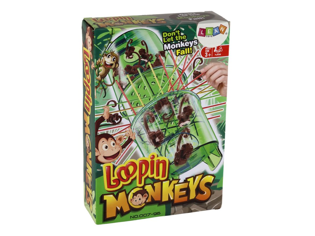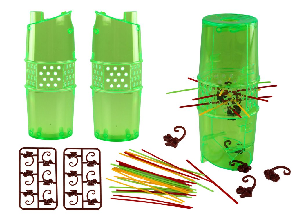 Тази нестандартна игра за сръчност съчетава простотата на традиционните играчки с вълнуващо предизвикателство, което със сигурност ще хареса както на деца, така и на възрастни. Цветните играчки се поставят в отвори на кулата, към която закачаме маймуните. Целта е да се предотврати падането на маймуните, а играчите се състезават за най-малък брой паднали маймуни. Тази игра носи радост и съревнование в едно, стимулирайки към още вълнуващи игри.