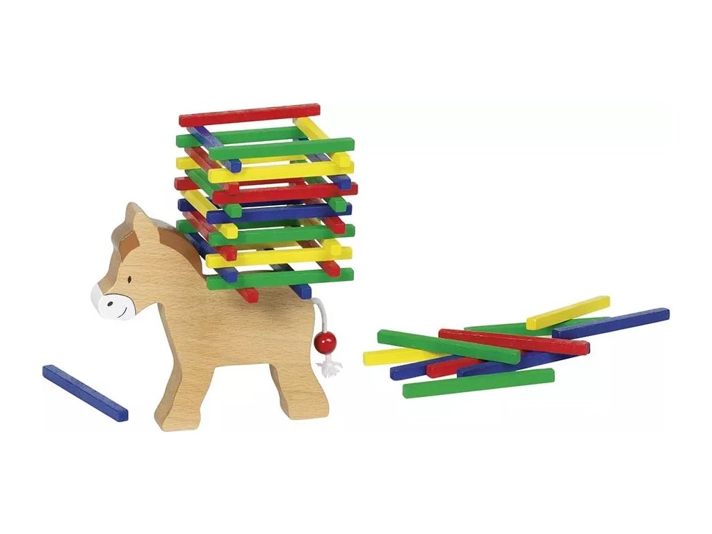 Игра за малки и големи играчи, която изисква спокоен ум, благоразумие и търпение. Целта е да натоварите на магаренцето колкото се може повече цветни дървени пръчици, без да паднат вече поставените пръчици.