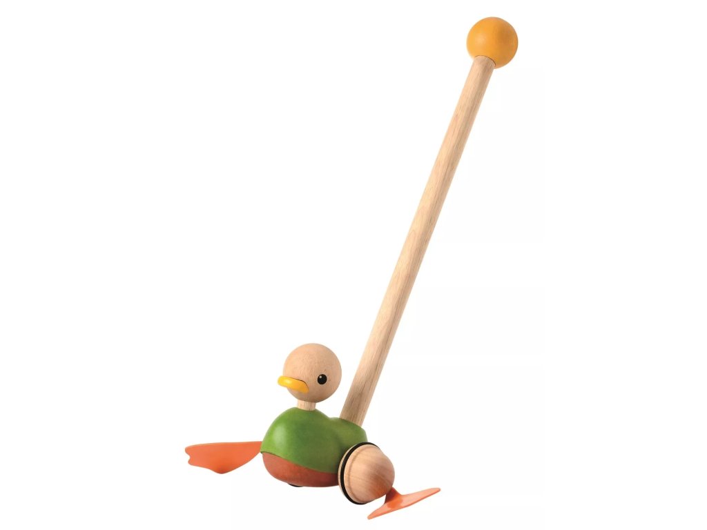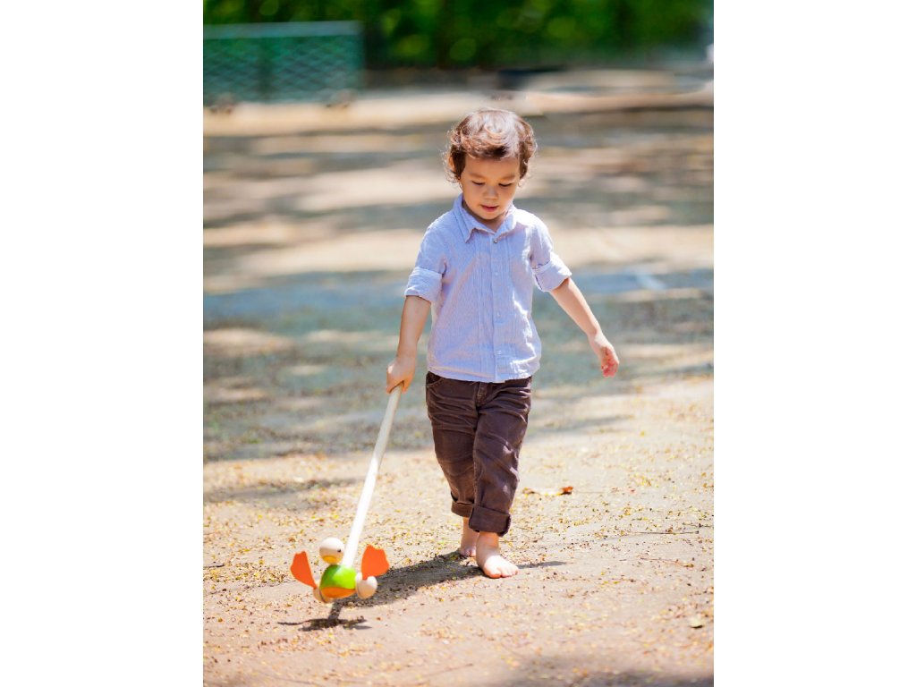 Обикновена и весела играчка за дърпане, предназначена да подпомага активното движение на малки деца. Когато се дърпа пред себе си, създава реалистично движение и звук на плискане.
