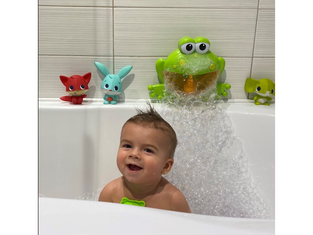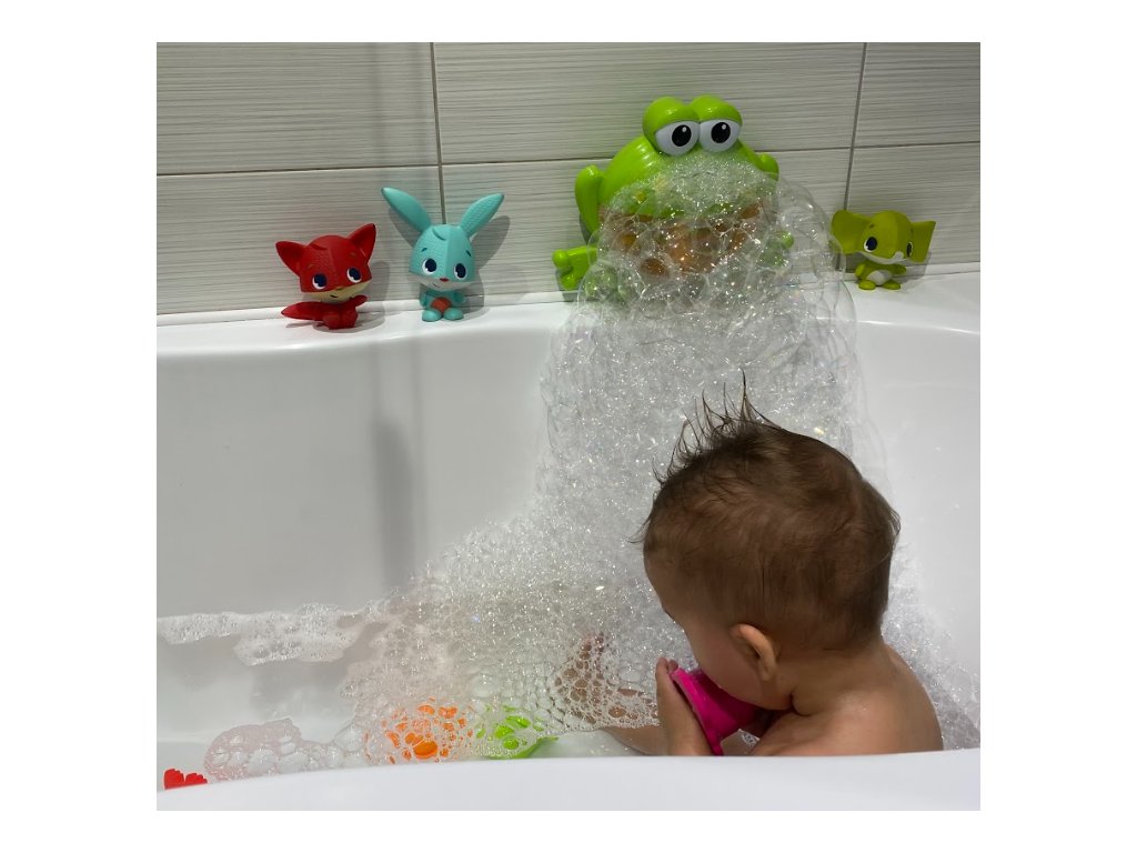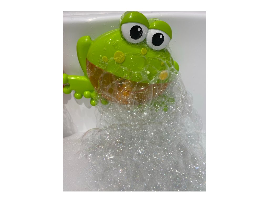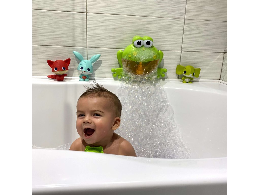 Играчка за вана за създаване на балончета жаба е предназначена за деца от 18 месеца нагоре. Играчката работи с 2 x 1,5 V AA батерии – не са включени в комплекта. Жабата за създаване на балончета се монтира лесно благодарение на трите вендузи от задната страна, които позволяват стабилно и надеждно закрепване към стената или ваната. В корема на жабата има контейнер за течност. Той трябва да се напълни с вода и малко детски сапунен разтвор или шампоан. Колкото повече течност добавите, толкова повече балончета ще се образуват. При включване жабата непрекъснато създава поток от сапунени балончета.