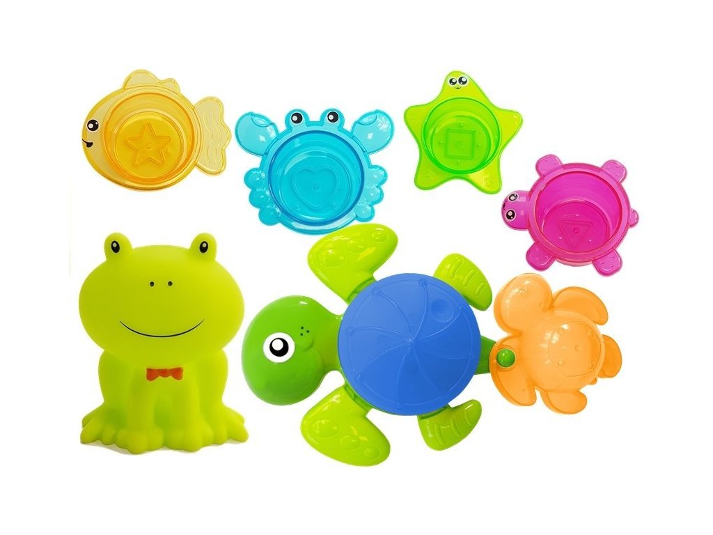 Забавен комплект Играчки за вана морски животни, който ще направи всяко къпане по-приятно и ще помогне на вашето дете да обикне водните игри. Включва пластмасови чашки във формата на морска звезда, рибка, раче и костенурка, които позволяват да се наблюдава движението на водата благодарение на отвори.