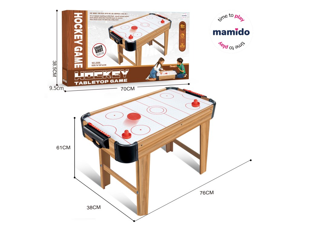 Пригответе се за страхотно забавление с класически настолен хокей! Тази игрална маса с реалистичен дизайн предлага часове на напрегнати битки за деца и възрастни. Просто вземете нападателните шайби и се опитайте да вкарате шайбата във вратата на противника.
