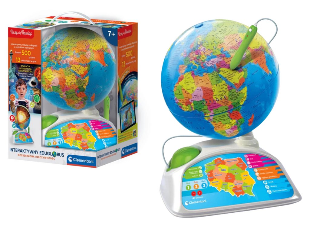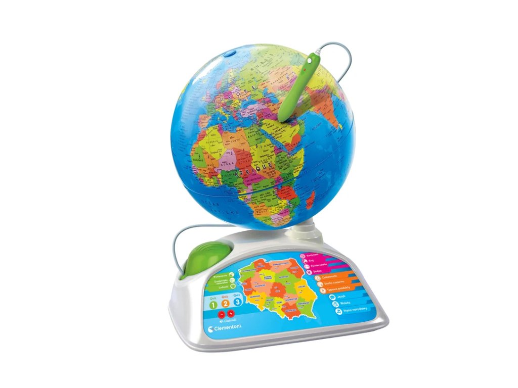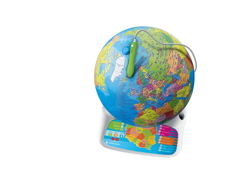 Интерактивен образователен глобус Clementoni е отличен начин да научите за света по забавен и увлекателен начин. С помощта на специално писалка децата могат да откриват интересни факти за държавите, тяхната география, култура и други теми.