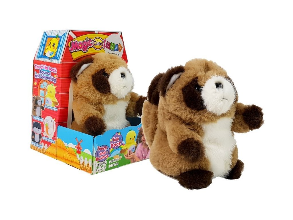 Интерактивен плюшен миеща мечка изглежда като истински – покрит е с мек и приятен на допир материал. След натискане на бутон, можете да говорите с нея, а тя ще повтори гласа ви, докато движи устните си.