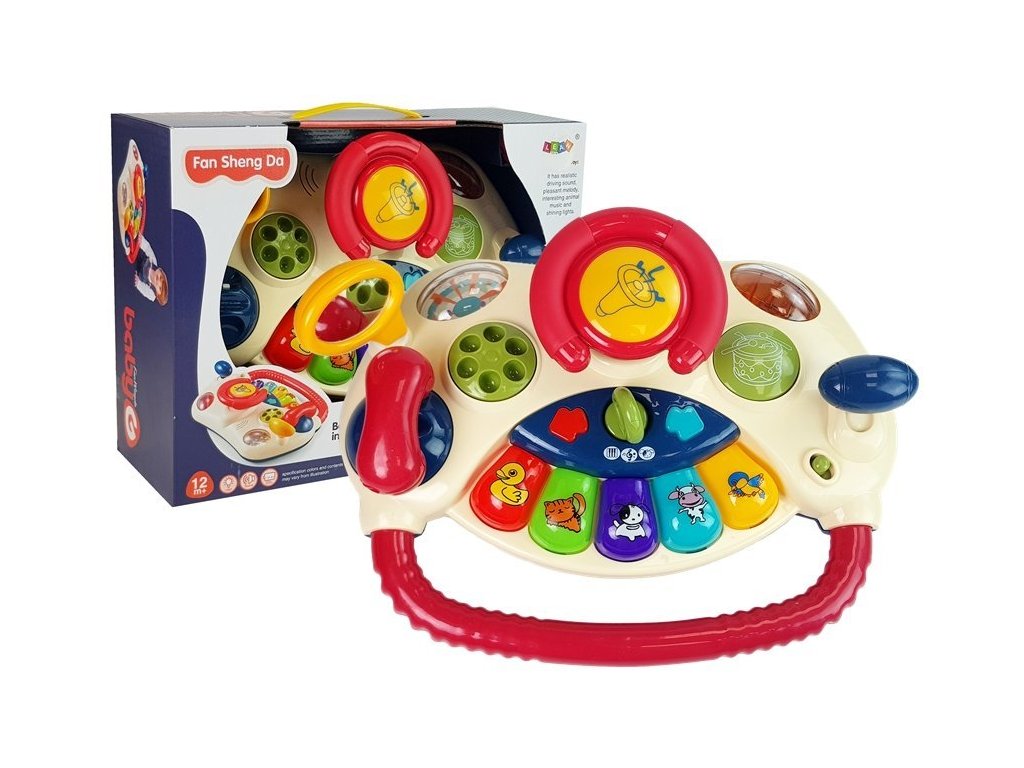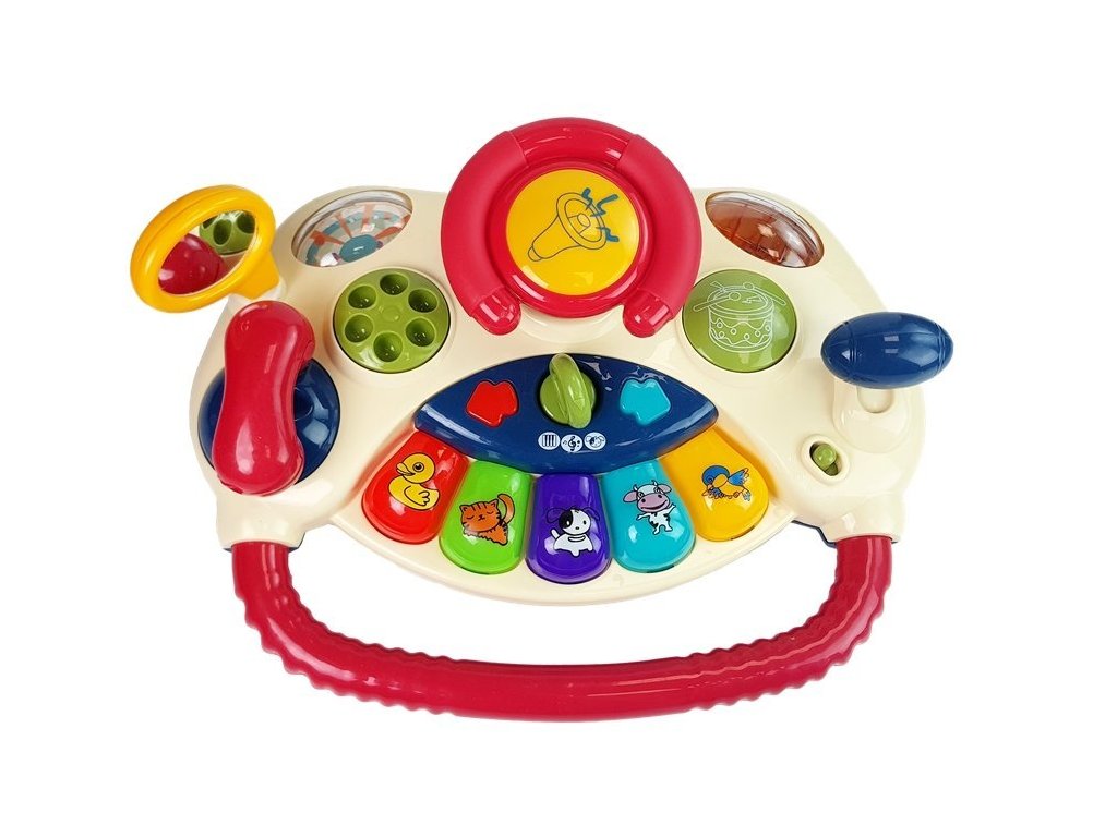 Отдясно на играчката има лост за смяна на предавките, а отляво – огледалце. Воланът разполага с 2 нива на звука. Върху волана има телефон и централни бутони с три различни режима. Детският волан издава реалистични звуци, които стимулират играта.