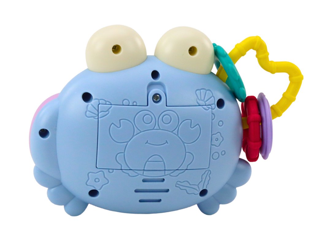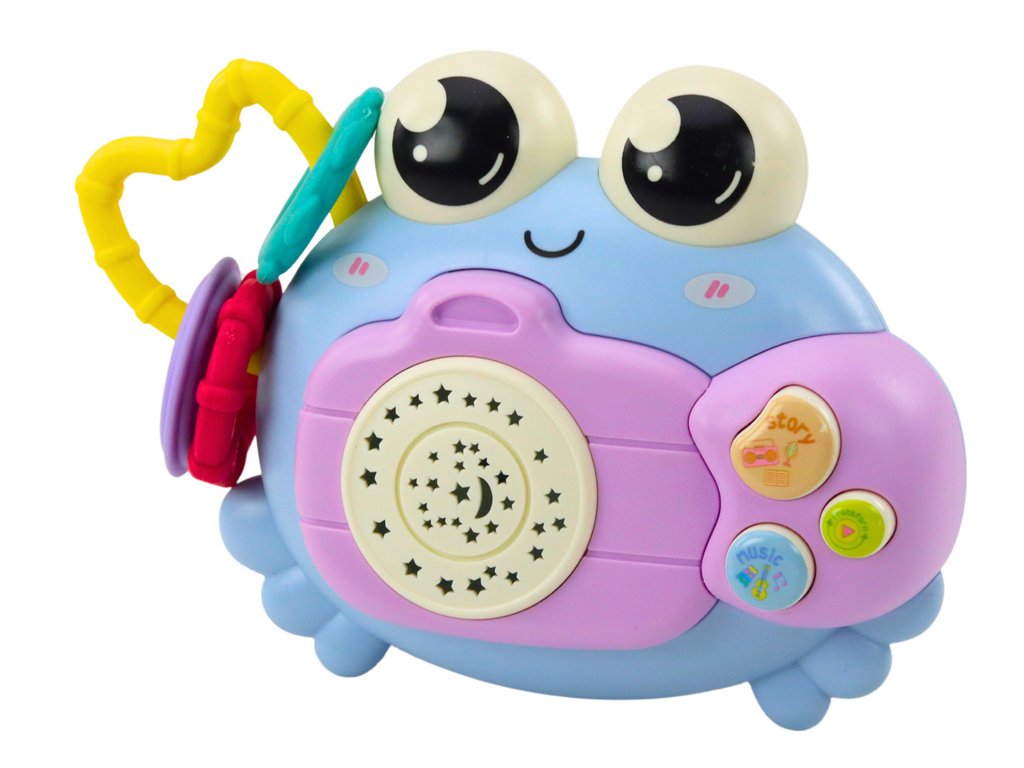 Открийте интерактивната играчка Интерактивна дрънкалка рак с проектор синя, която осигурява забавление и стимулира сетивата на вашето дете. Този син рак не само издава приятни звуци благодарение на вградените дрънкалки, но и проектира цветни звезди, които оживяват всяка игра. Изработен е от безопасни, нетоксични материали, идеален за малките ръчички, подпомага развитието на моториката и слуховото възприятие. Отлична играчка, която съчетава забавление и обучение.
