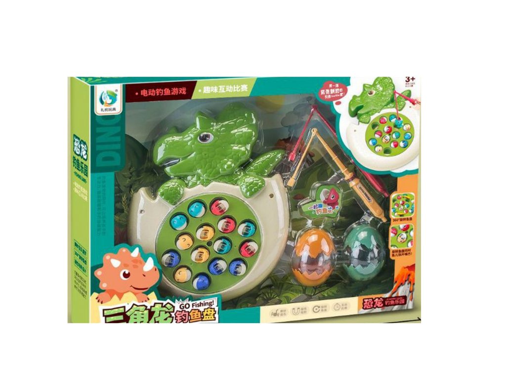Открийте вълшебния свят на лов на рибки в забавна и цветна игра във формата на динозавър. Тази интерактивна играчка не само ще привлече децата с очарователния си вид, но и предлага вълнуваща и динамична игра, която развива наблюдателност, координация и фина моторика. Въртящото се езерце, веселите звуци и цветните рибки създават магическа атмосфера, изпълнена със смях и състезание.
