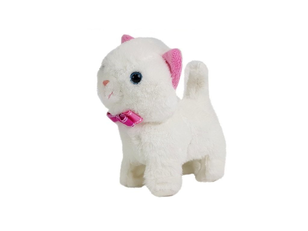 Интерактивна котка бяла е изработена от мек и нетоксичен, 100% екологичен материал, който е изключително приятен на допир. Играчката има големи сини очи и изправена опашка.