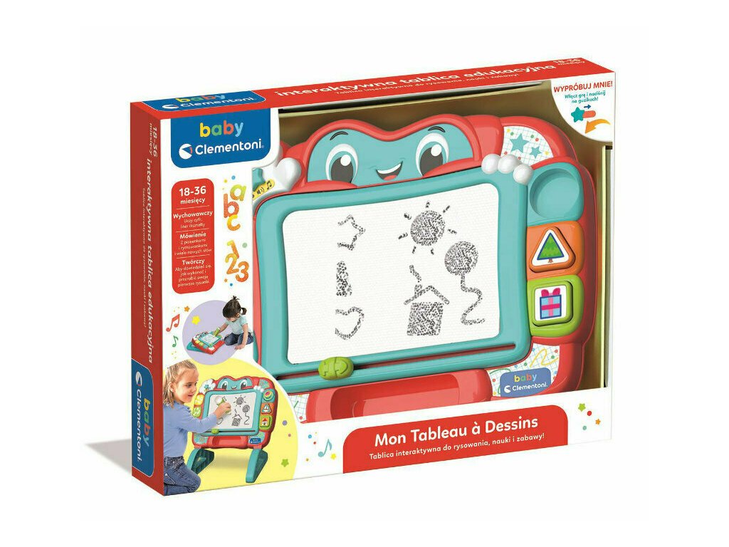 Интерактивна магнитна дъска Clementoni е цветна магнитна играчка, която подкрепя първите стъпки на детето в света на рисуването и креативността. С помощта на забавни функции развива сръчността и въображението на малките художници. Дъската е специално проектирана, за да бъде идеалният спътник за деца от 18 месеца нататък.