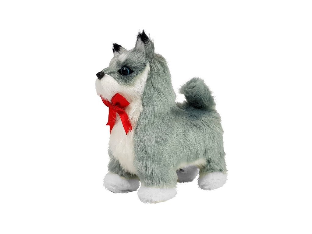 Интерактивно кученце Хъски се активира при всяко докосване, като започва да лае при гушка, движи глава и опашка. При натискане от страни или на коремчето си, движи лапичките, върви напред, лае и на заден план свири приятна музика.