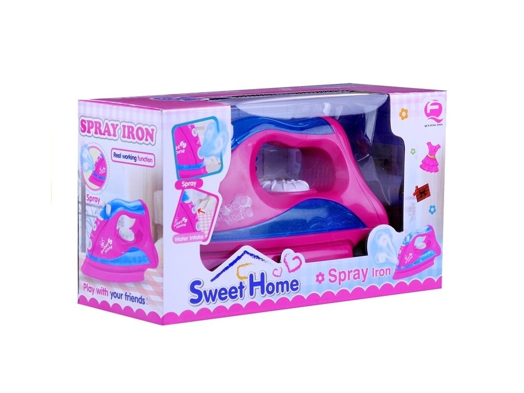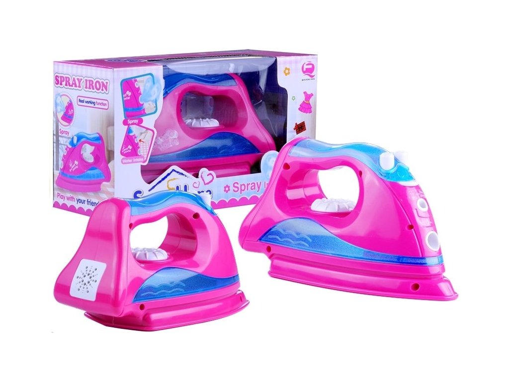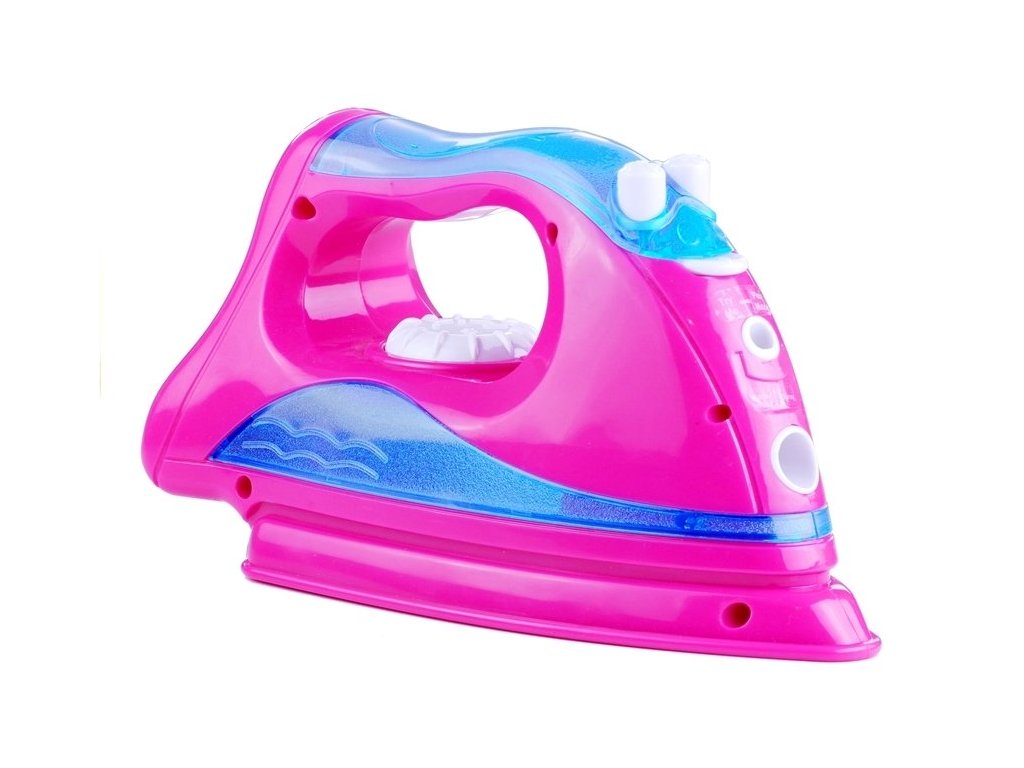 Ютия за деца със звукови и светлинни ефекти в розов цвят, която впечатлява не само с реалистичен дизайн, вдъхновен от пълноразмерните уреди, но и със светлинни и звукови ефекти. В долната част на играчката има специална бутилка, която улеснява пълненето на уреда с вода. За да се отдели пара, достатъчно е да натиснете бутона с нейния символ. Натискането на друг бутон активира звукови ефекти и включва дълга синя светлина.