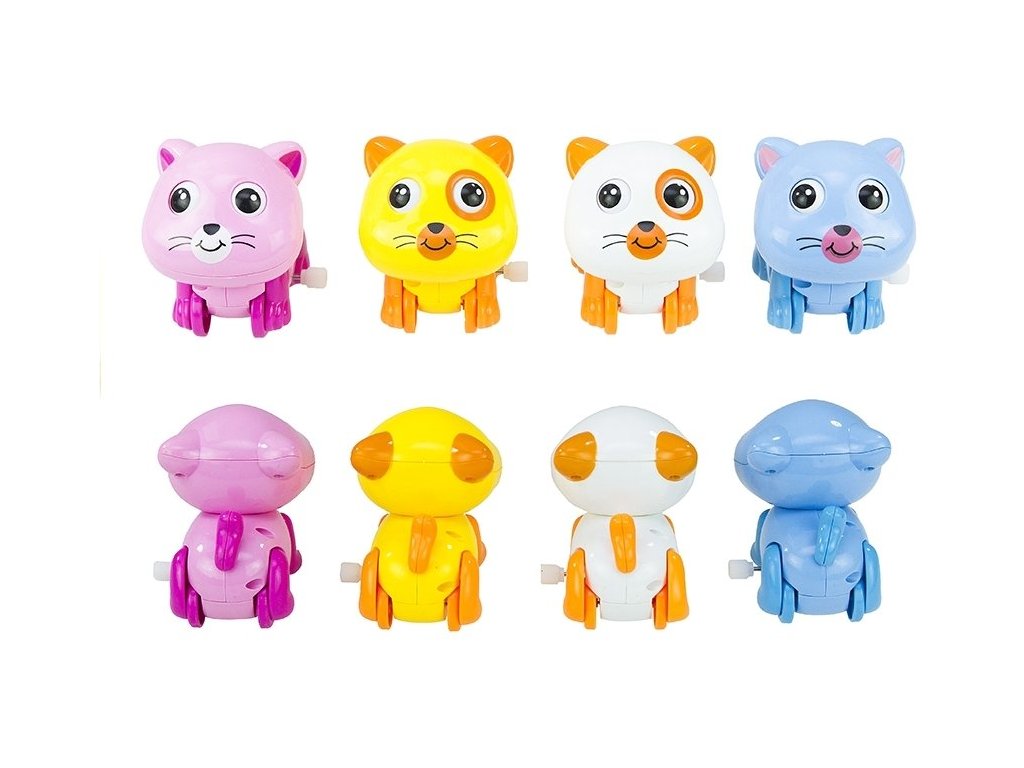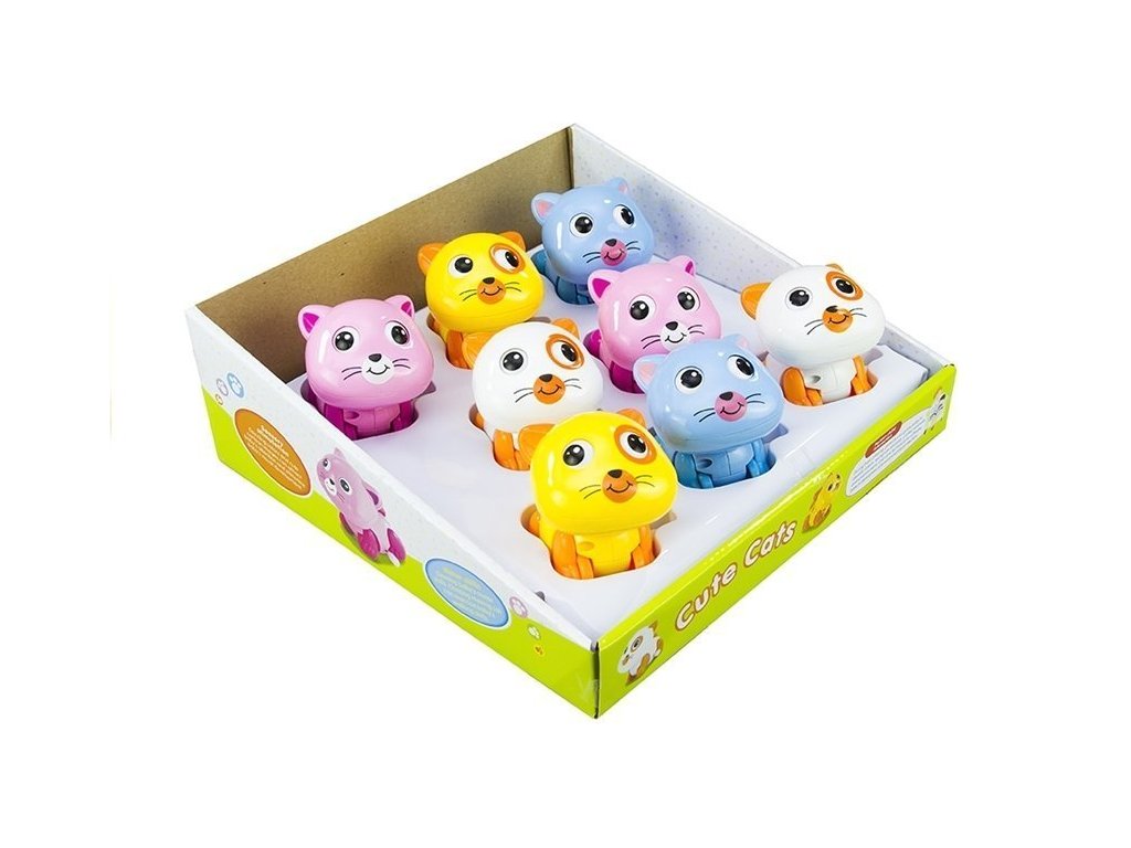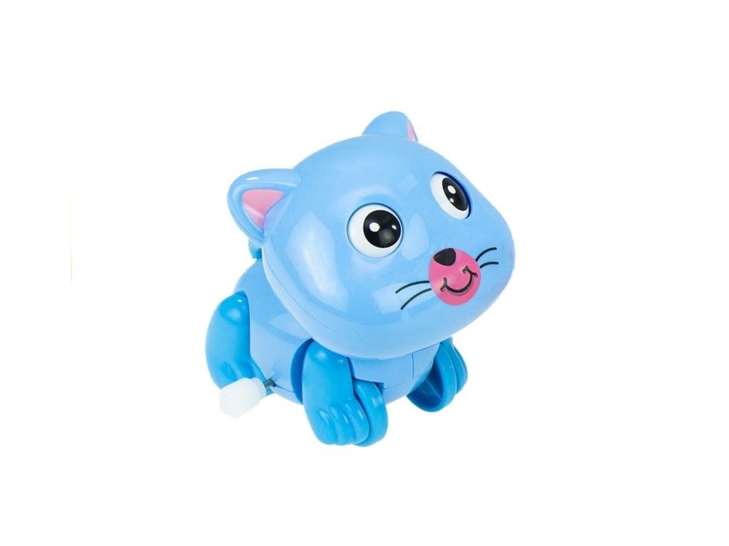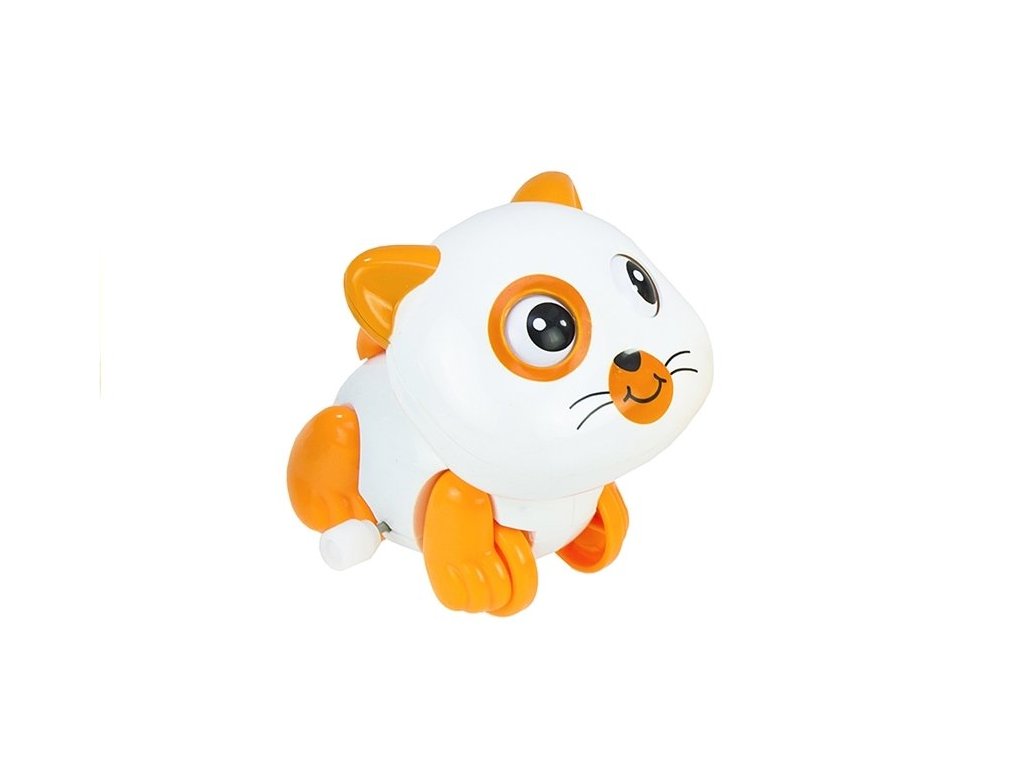 След издърпване котенцето тръгва напред, върти опашката си и мести лапичките и очите си.