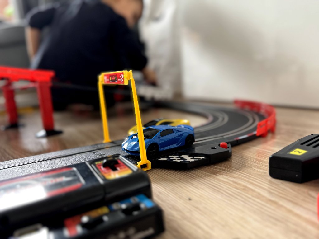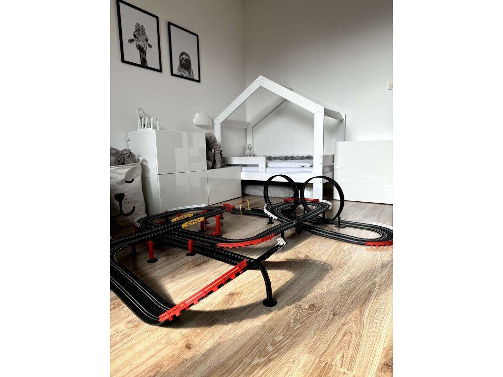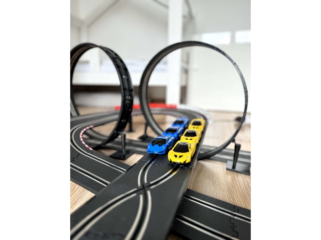 Голям автотрек, състоящ се от остри завои и 360-градусови обръчи. В комплекта са включени две колички, два контролера и брояч на обиколките. Автотрекът разполага с два режима на скорост – бавен и бърз.