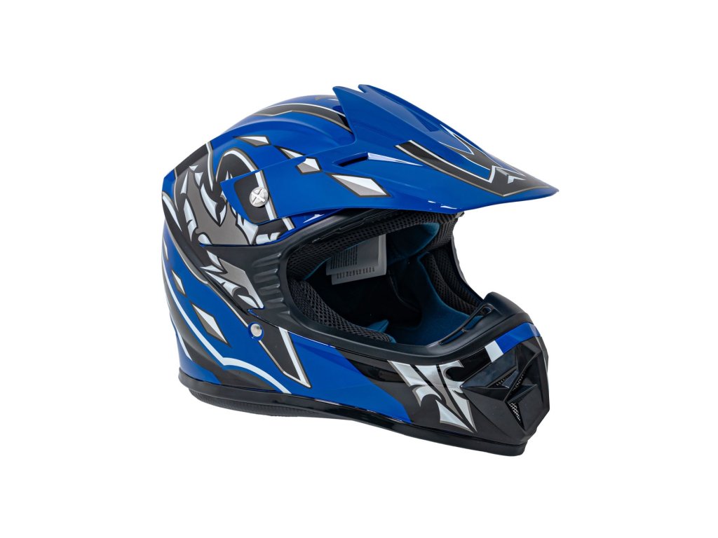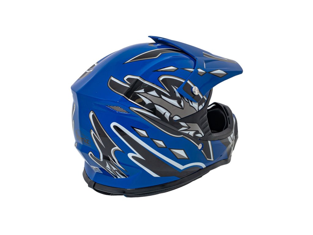 Тази ендуро каска за мотор Ендуро размер S синя е перфектен избор за мотористи, които търсят комбинация от безопасност, комфорт и съвременен дизайн. Здравият корпус от ABS материал осигурява надеждна защита, докато иновативната вентилационна система гарантира оптимална циркулация на въздуха по време на каране. Каската разполага с регулируем козирка и практично микрометрично заключване за бързо и сигурно закрепване.