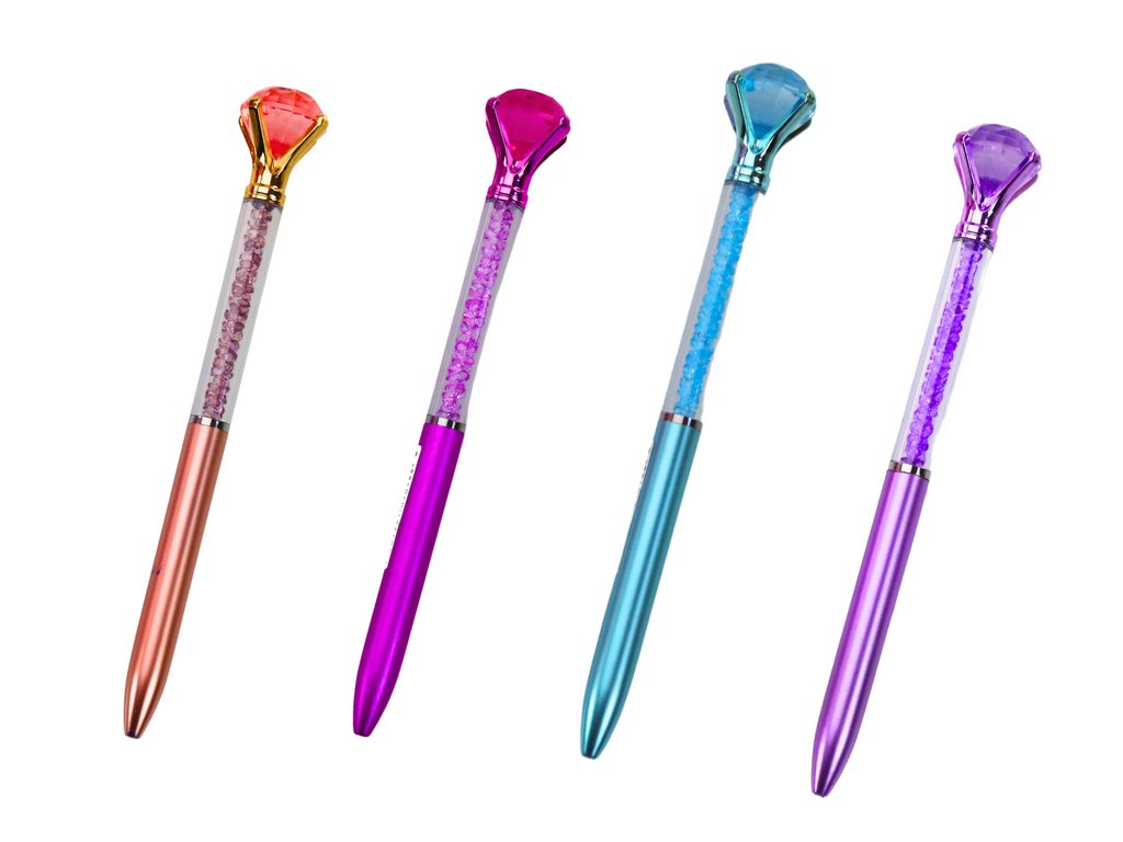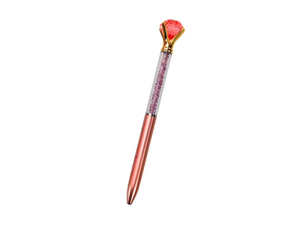 Тази елегантна химикалка с диамант, синьо мастило 0,7 мм микс съчетава стил и оригиналност. Прозрачният корпус с блестящи камъчета придава луксозен вид, докато диамантът създава уникален детайл. Идеална както като практичен аксесоар, така и като дизайнерски подарък.