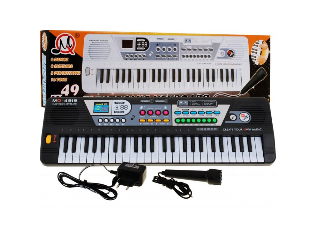 Keyboard е мултифункционален музикален инструмент, който развива въображението, чувството за ритъм, моториката на ръцете и слуха. Също така помага да се събуди страстта към музиката у малките музикални ентусиасти. Преносимите клавиши имат много функции, благодарение на които децата ще изпитат много радост. Музикалният комплект също така включва микрофон и мрежово захранване. Клавишите имат избор от 2 програми за обучение по свирене. Продуктът е предназначен за деца над 3 години и има CE сертификат.