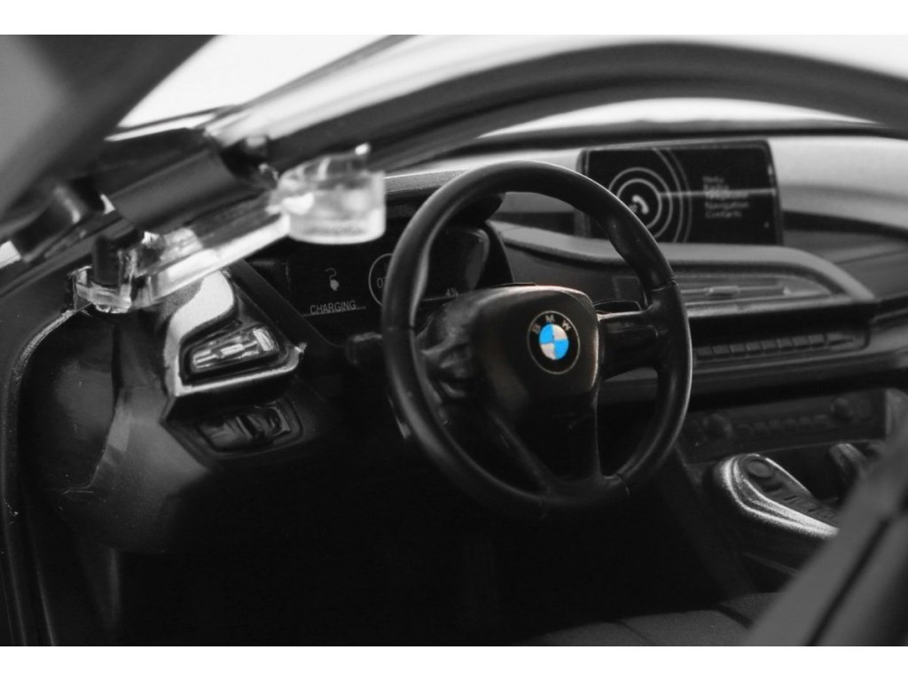 Кола с дистанционно управление BMW i8 е изработена от висококачествен ABS пластмаса и най-добри механични и електронни компоненти. Интериорът е детайлно пресъздаден. Колата е оборудвана с предни и задни LED светлини. Моделите на Rastar се движат бързо и с изключителна точност.