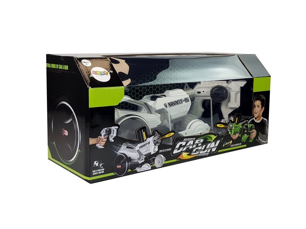 С тази играчка можете да играете по два начина. Благодарение на конструкцията ѝ, тя лесно се преобразува в оръжие или в кола с дистанционно управление.