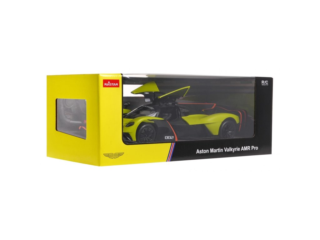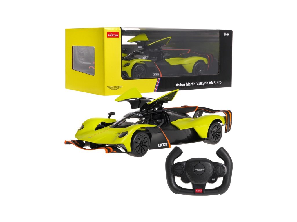 Ексклузивният радио контролирана модел на спортната кола Aston Martin Valkyrie AMR Pro от марката RASTAR е отлично решение както за малки, така и за големи любители на автомобили. В мащаб 1:14 предлага реалистични детайли на каросерията и интериора, LED осветление и функционални отварящи се врати. Моделът разполага с две скорости, независимо окачване и движение във всички посоки. Благодарение на честота 2,4 GHz осигурява прецизен контрол без смущения.