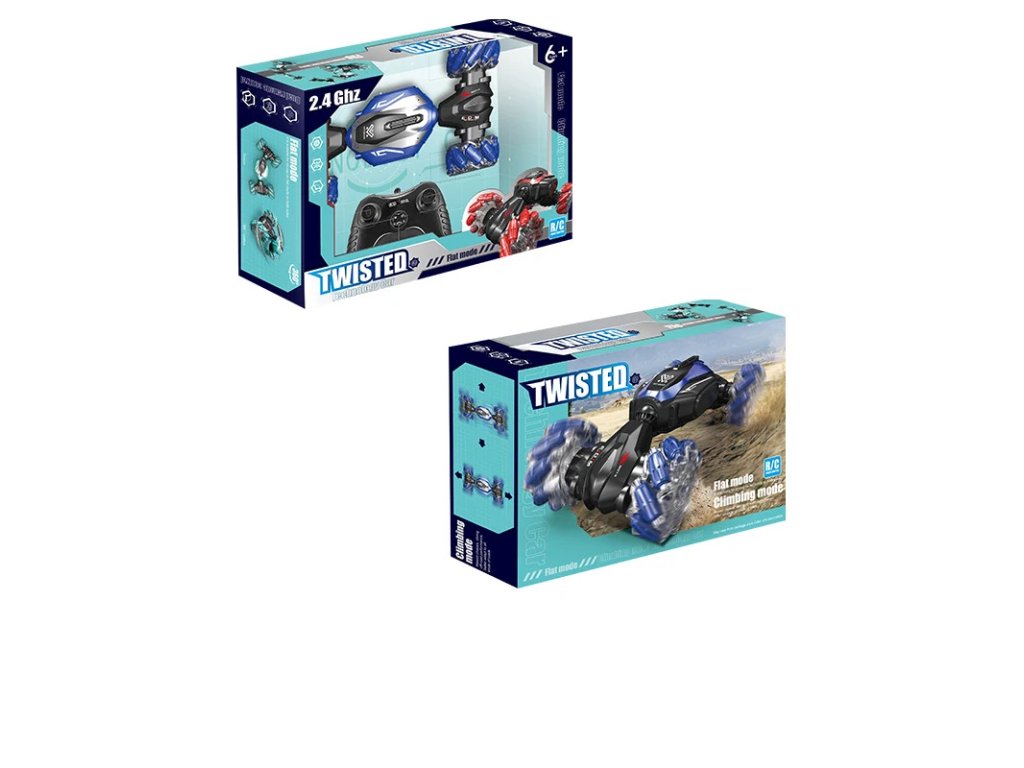Количка с дистанционно управление Количка с дистанционно управление + управление с движение на ръката Twisted 360° 4x4 червена в червен цвят, гарантира забавление и динамика. Разполага с множество функции, като 4x4 задвижване, движение в двете посоки и устойчива на падане конструкция. Високото окачване и големите колела позволяват безпроблемно шофиране по неравен терен. Количката се управлява с дистанционно на 2,4 GHz, което осигурява стабилна връзка без забавяния.