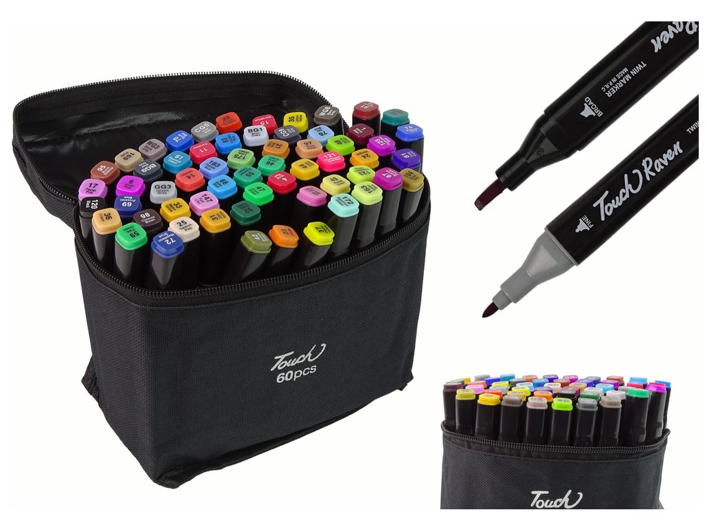 Комплектът от 60 маркера е опакован в стилен калъф, което го прави идеален подарък!