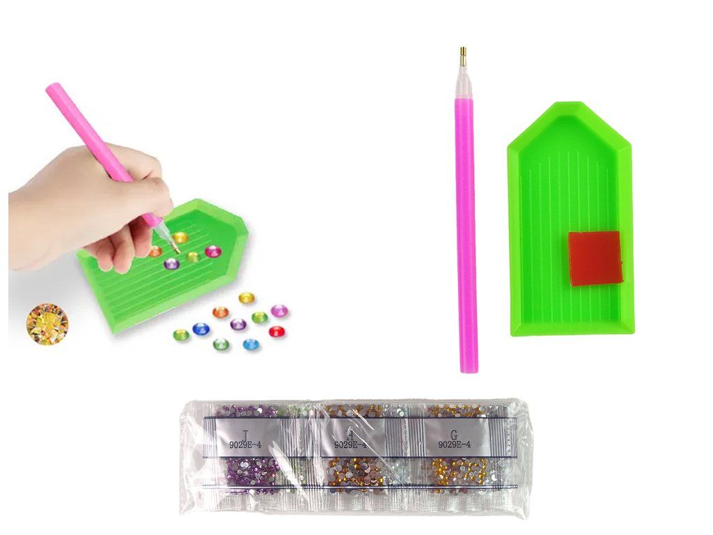 - Опаковка с цветни кристалчета (диаманти с различни размери)