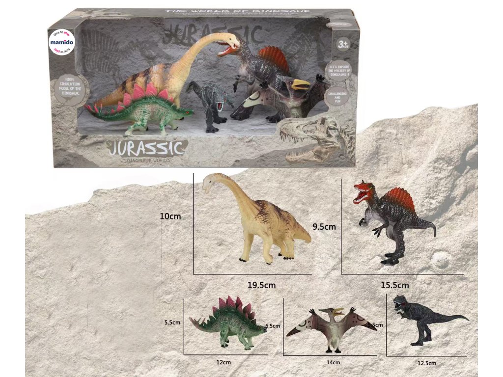 Отправете се в света на праисторията с реалистичен комплект динозаври, който ще зарадва всеки малък откривател! В опаковката ще намерите пет детайлно изработени фигурки на любими праисторически създания – от страховит хищник до могъщ растителнояден.