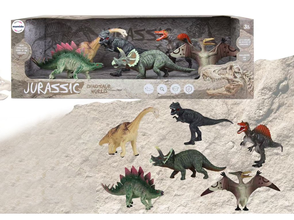 Отправете се в света на праисторията с реалистичен комплект динозаври, който ще зарадва всеки малък откривател! В комплекта ще намерите шест детайлно изработени фигурки на любими праисторически създания – от страховит хищник до могъщ тревопасен.