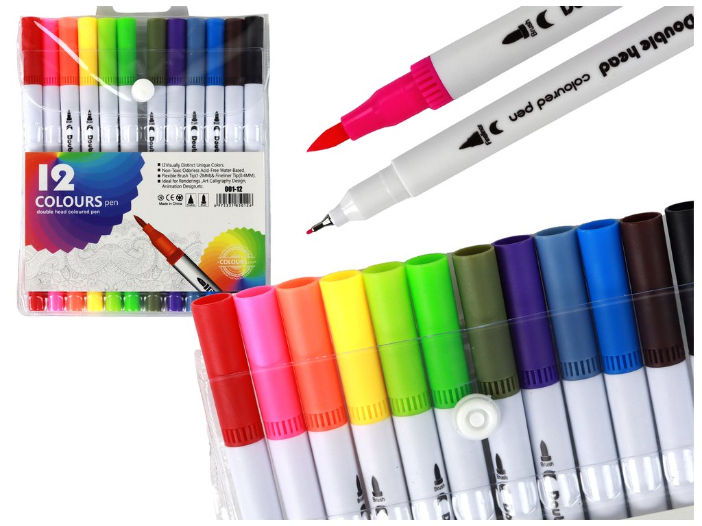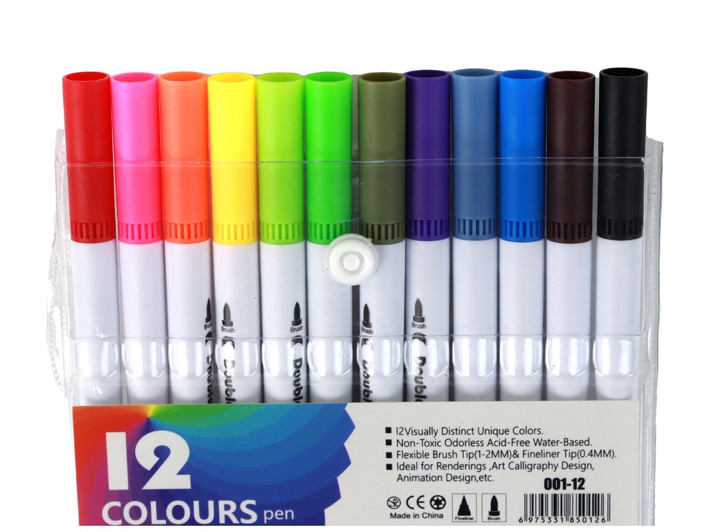 Комплектът включва до 12 различни цветни двустранни флумастери, които ви позволяват да изразите своята креативност по най-живописен начин. Независимо дали сте професионален художник или начинаещ ентусиаст, нашите флумастери ще отговорят на вашите очаквания по отношение на качество и разнообразие.