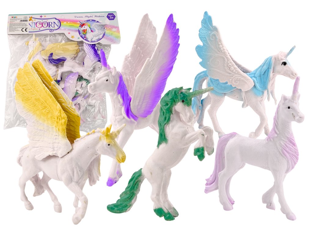 Комплект фигури на еднорог Пегас бял вълшебни крила 6 бр.