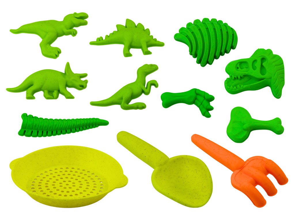 Комплект формички за пясък динозаври и вкаменелости зелени