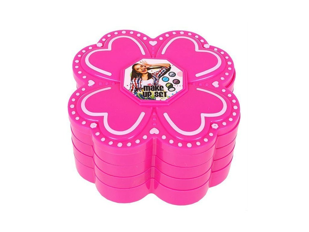 Фантастичен Комплект гримове за деца с разгъваща се кутия. Съдържа всичко необходимо за грим - пълен набор от цветни сенки за очи, гланцове и червила.