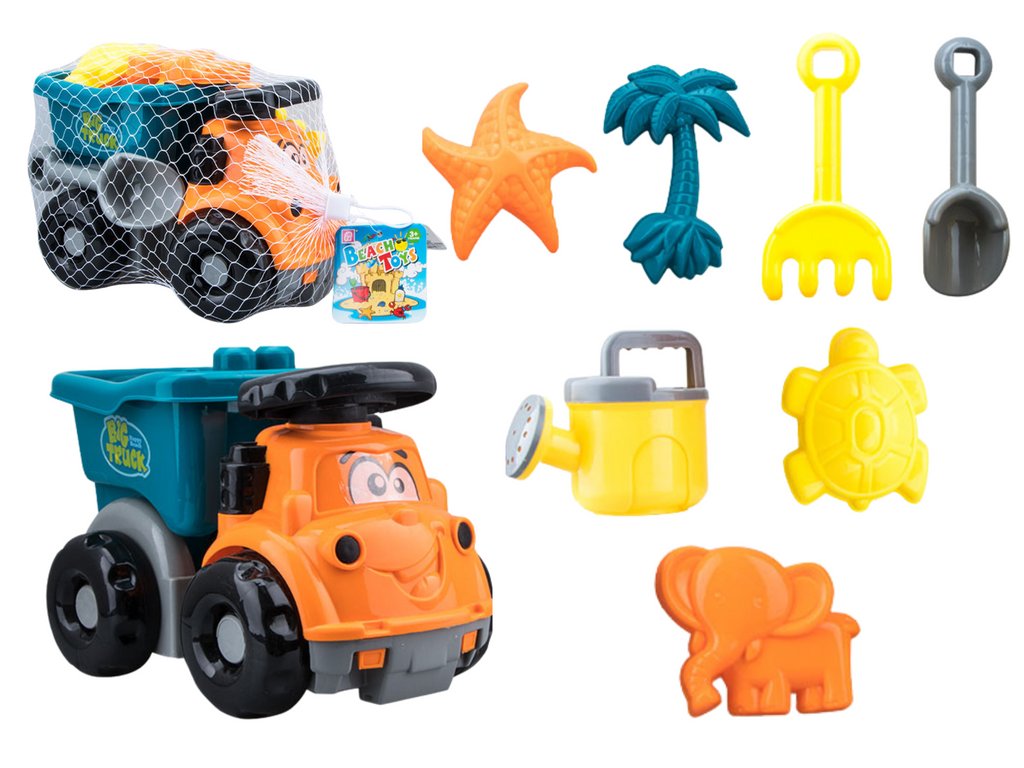 Комплектът играчки за пясък с самосвал е отличен избор за плажа или пясъчника, предлагайки безкрайни възможности за креативна и развиваща игра.