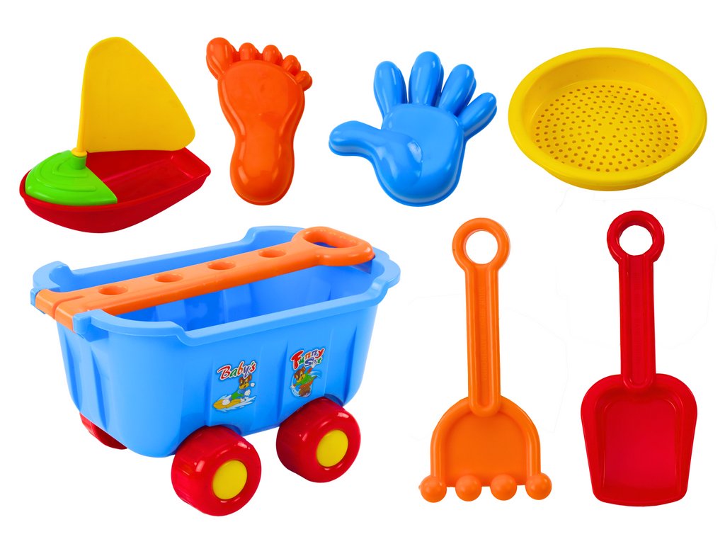 Комплект играчки за пясък в количка синьо